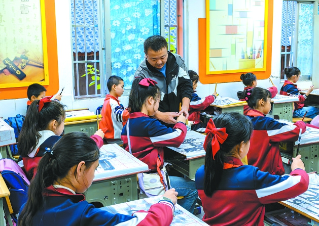 营山:书法培训进校园